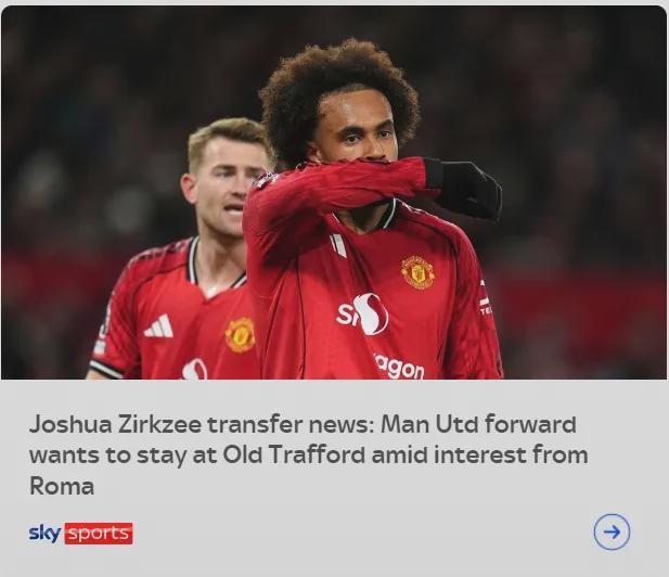 天空体育消息,齐尔克泽希望留在曼联为自己的位置而战,尽管罗马等球队有意签下他。
